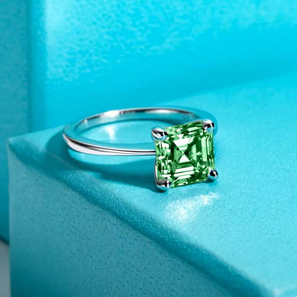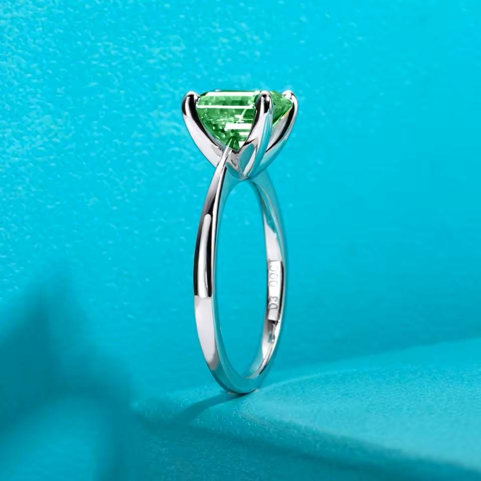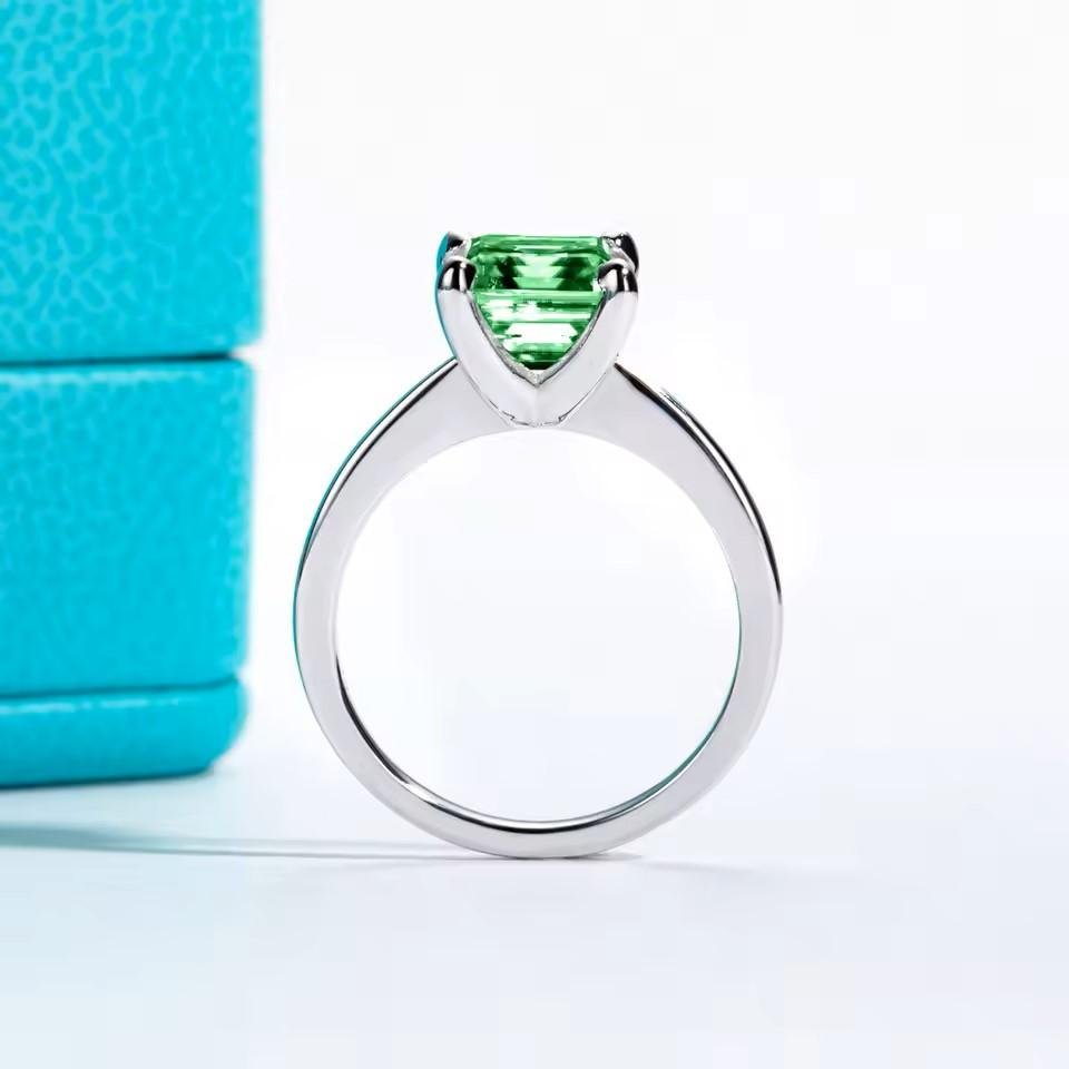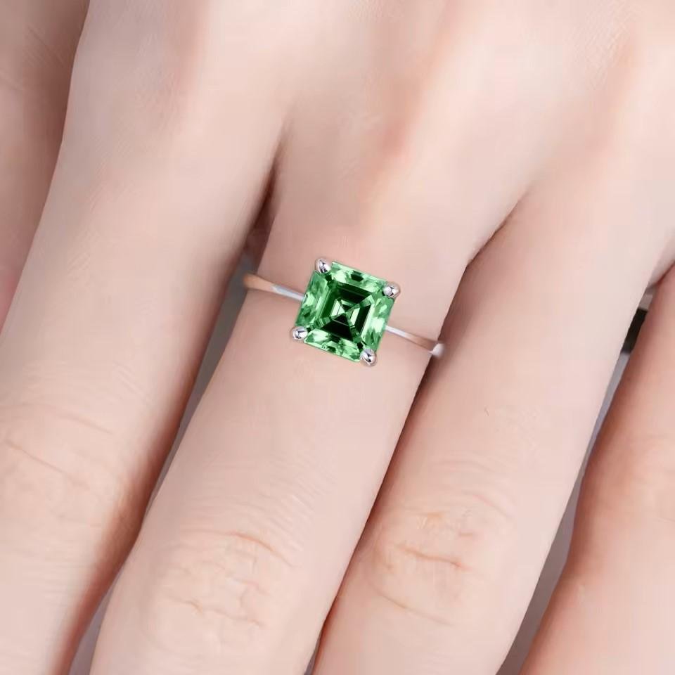 Colombian Cultivated Emerald : 3ct 8*8mm Asscher Cut Engagement Rings Gold Plated S925 Silver Classic Rings For Women