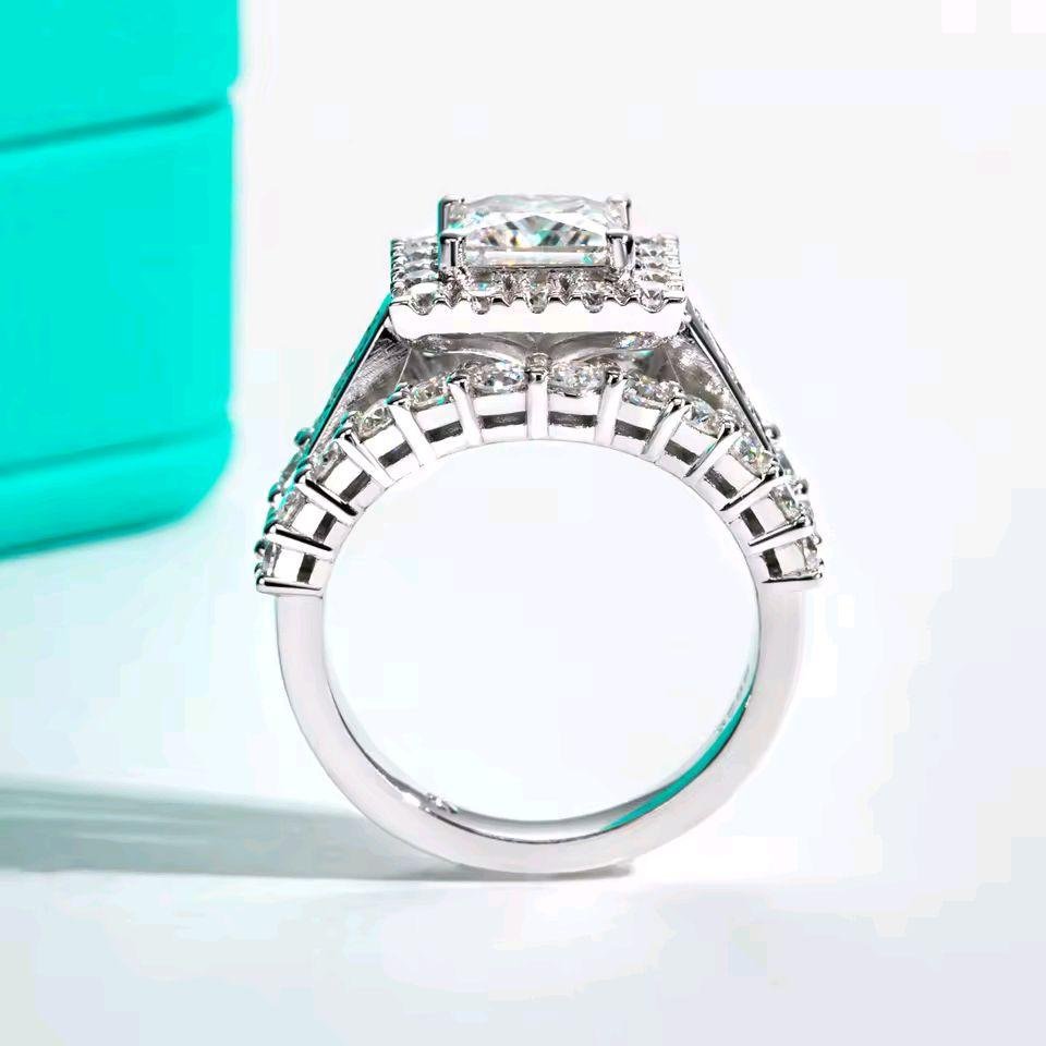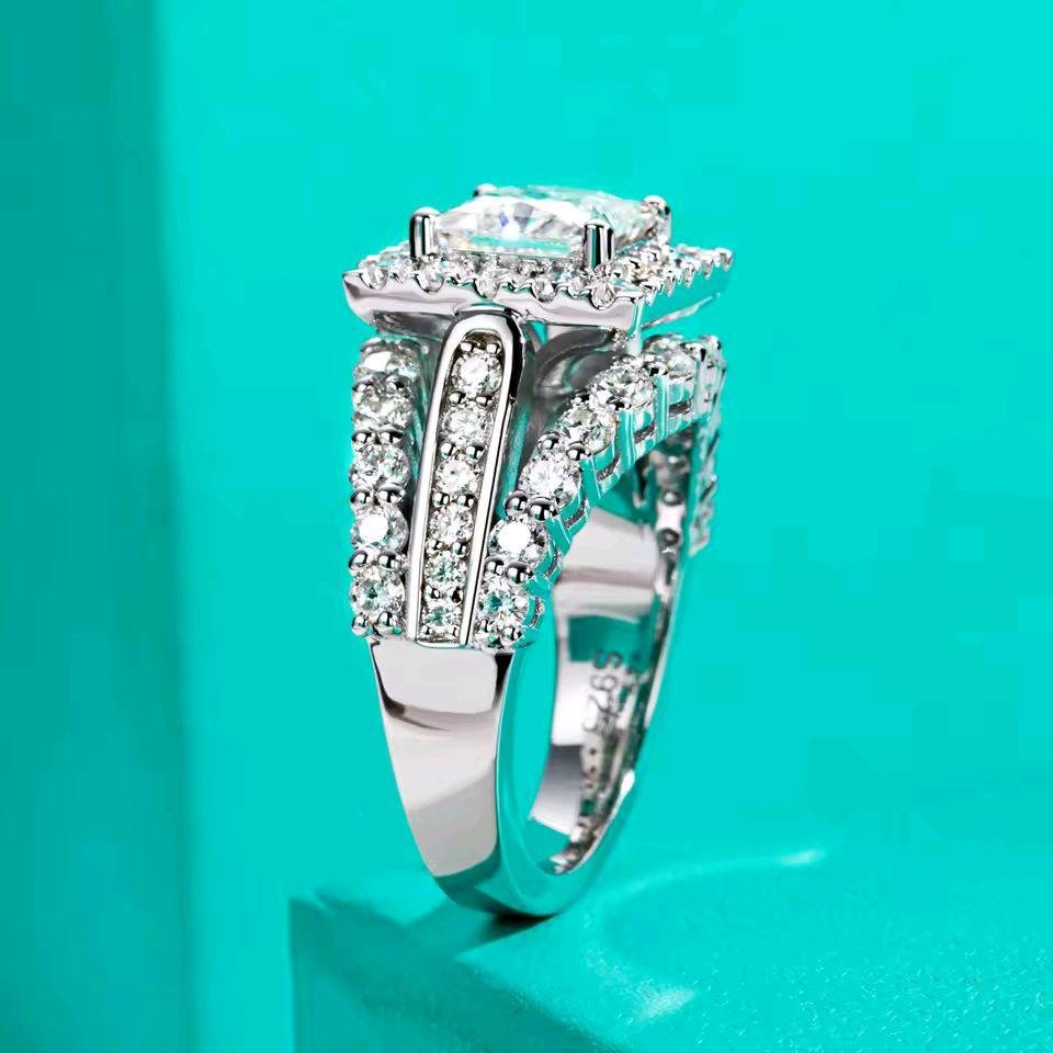 ✨ Moissanite Cincin Pria Wanita dengan berat 3.884ct dan warna D. Desain