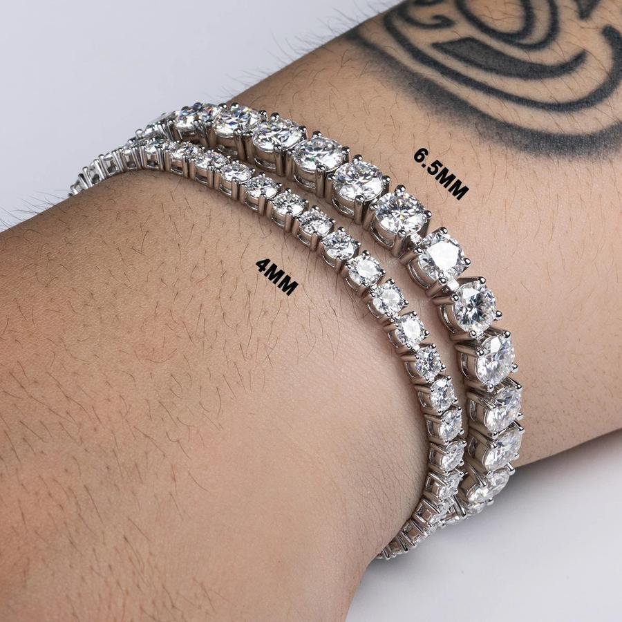 Moissanite Gelang Pria Wanita : 6.5mm 24-29cttw D Color Diamond Tennis Bracelet On HandMoissanite Gelang Pria Wanita : 6.5mm 24-29cttw D Color Diamond Tennis Bracelet On Hand