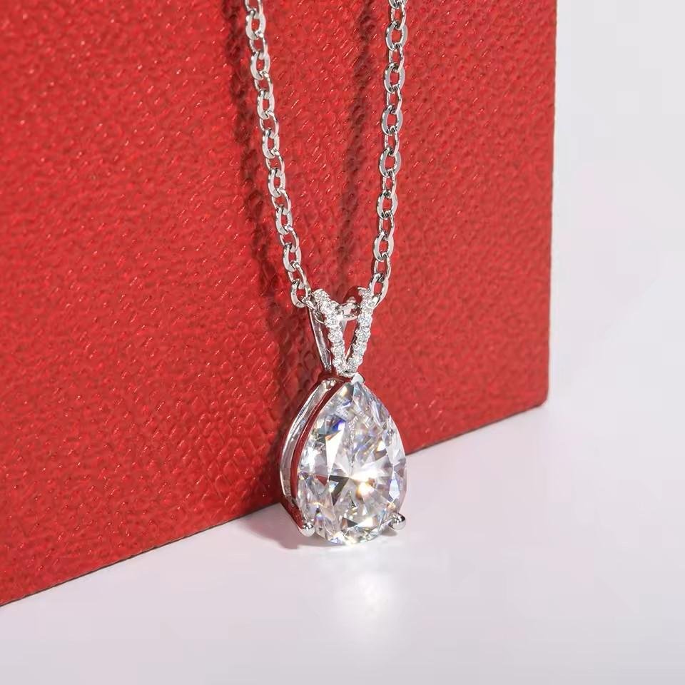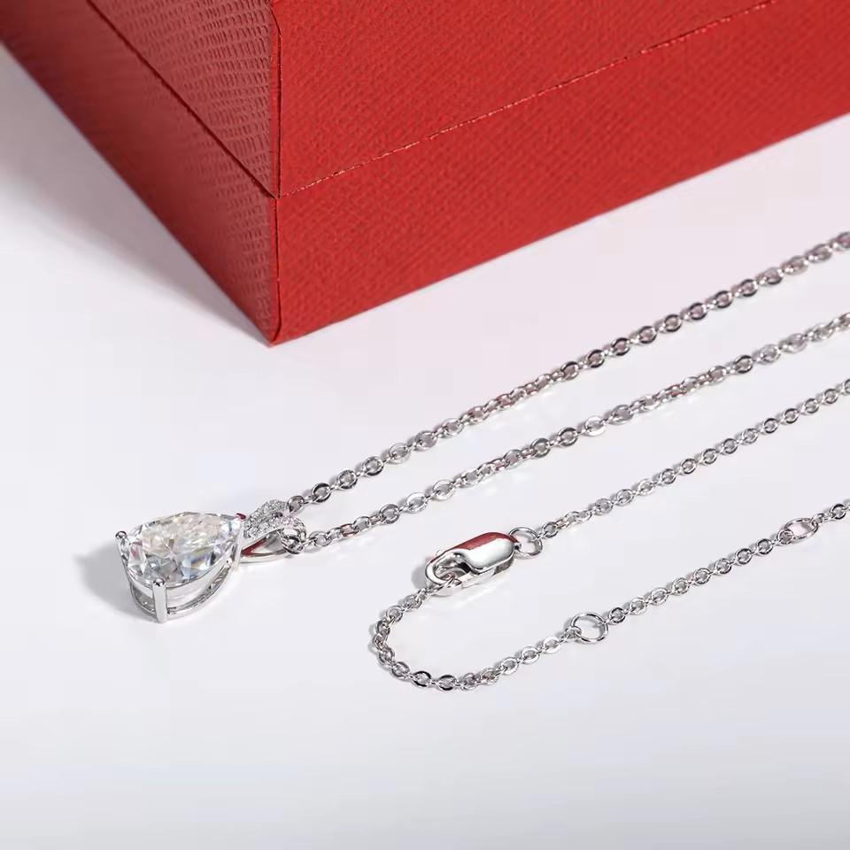 Moissanite : 14K White Gold 2.5 Carat Pear Teardrop Cut D Color Diamond Necklace With Certificate Jewelry