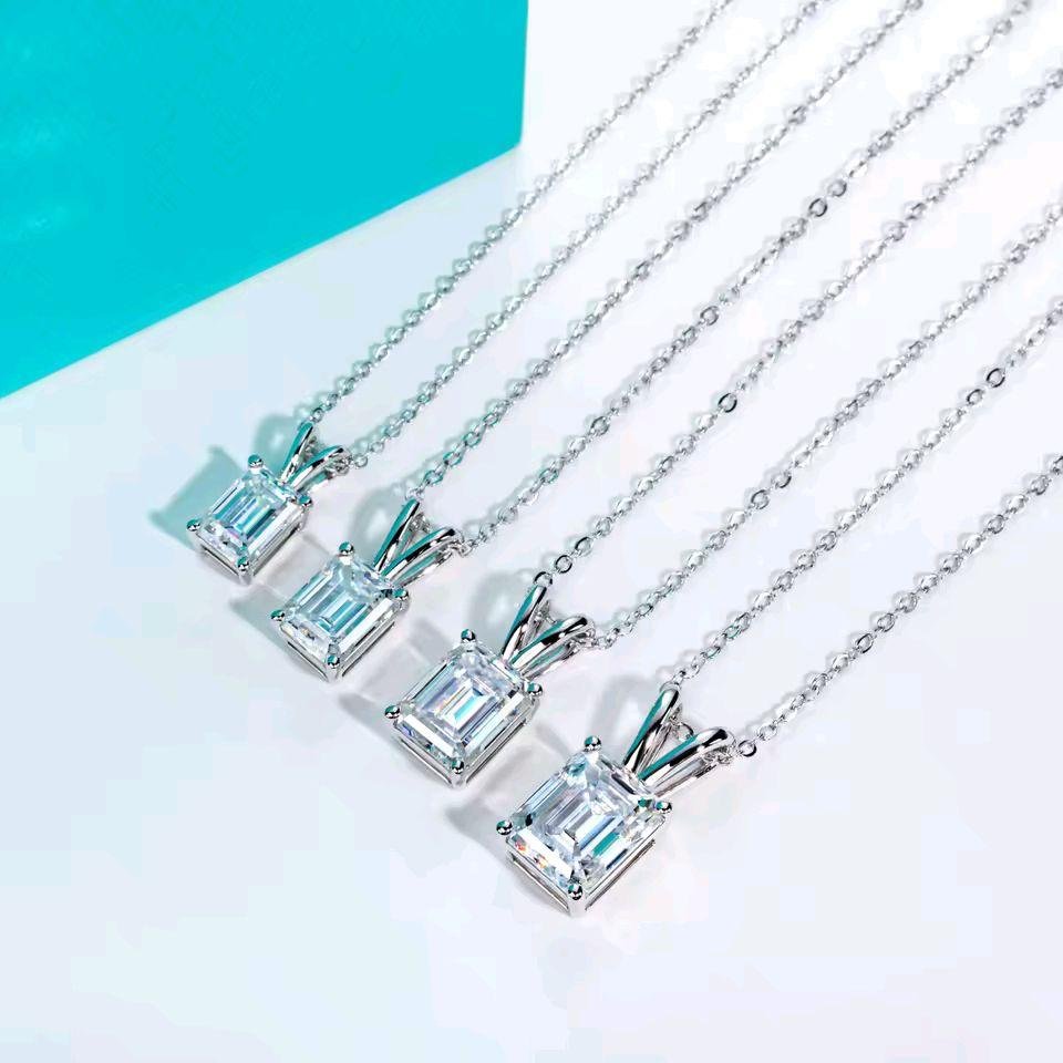 ✨ Moissanite Kalung Pria Wanita : Emerald Cut Pendant Necklace 925 Sterling