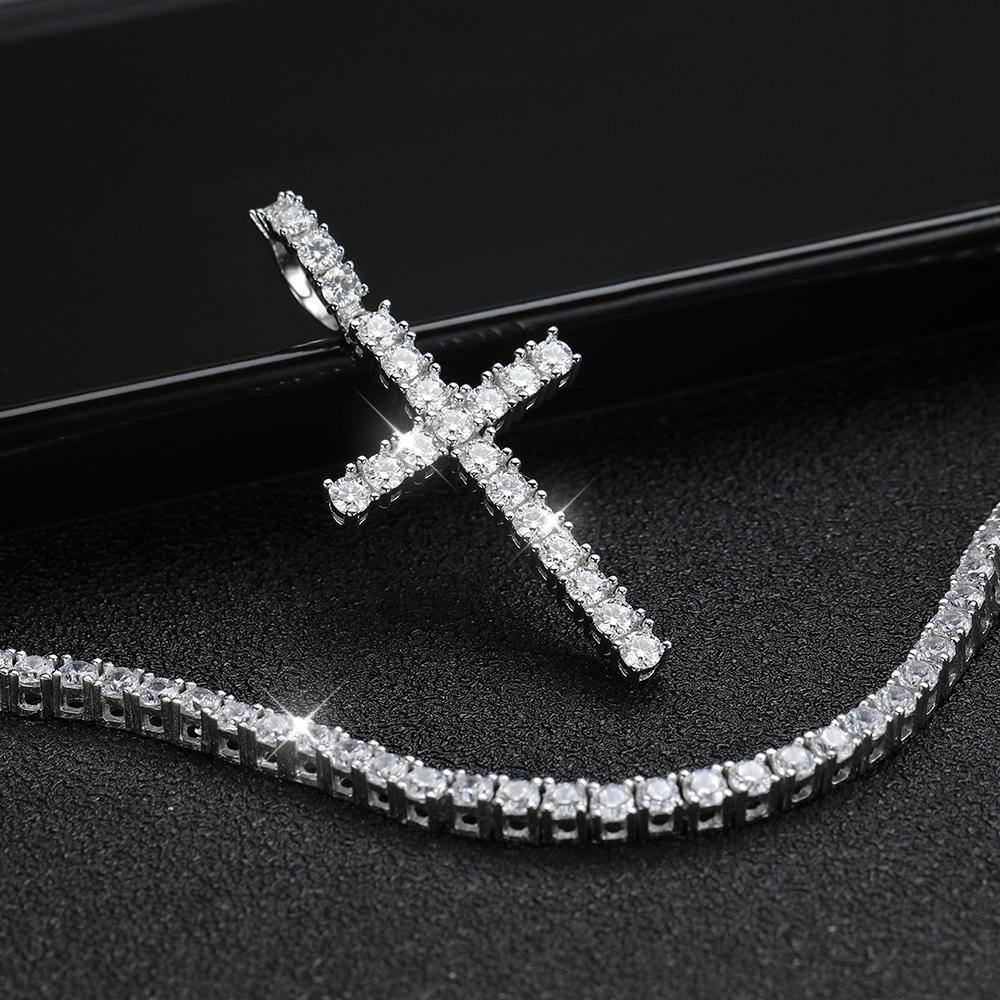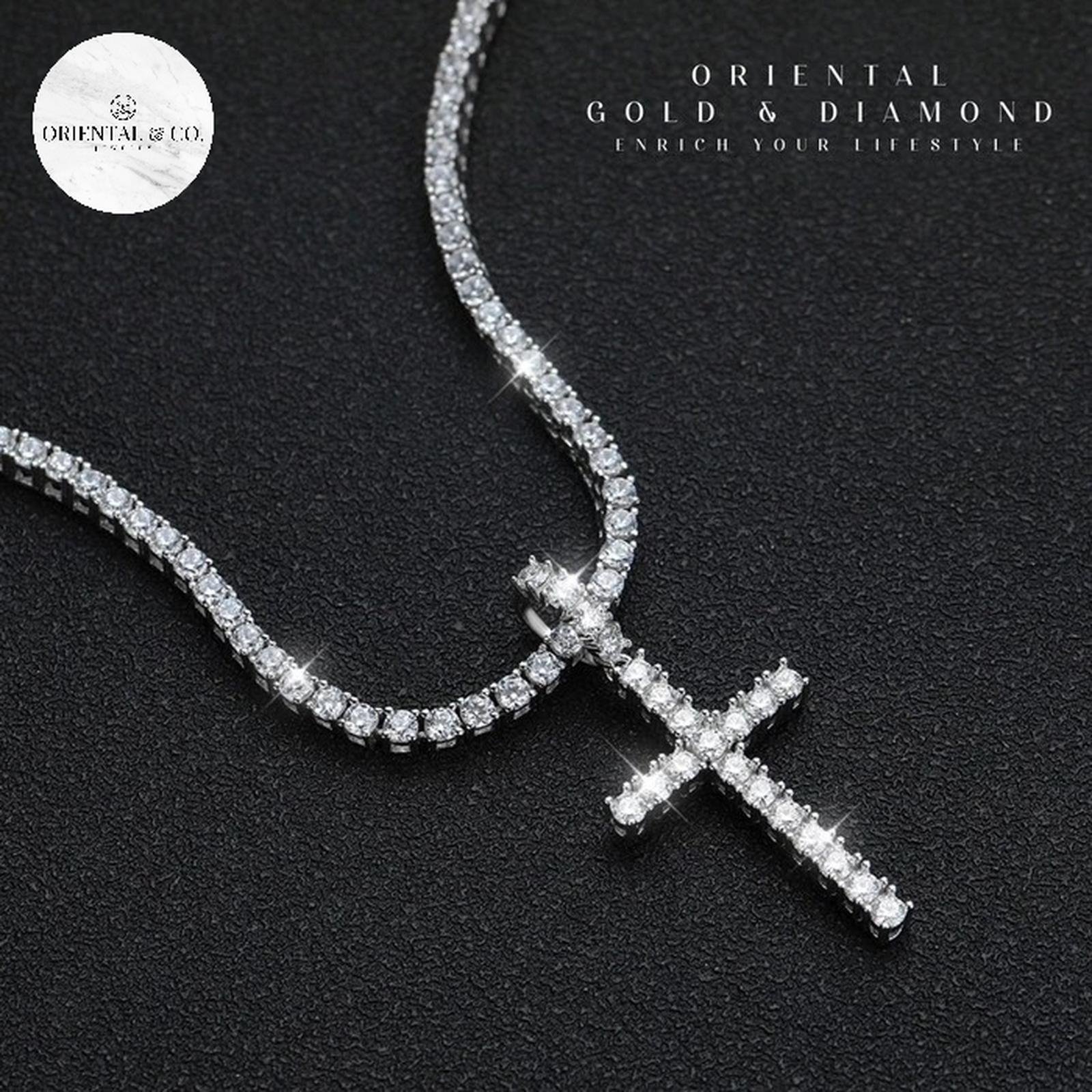 Moissanite Kalung Pria Wanita : Tennis Necklace with Pendant 925 Sterling Sliver For Ma